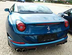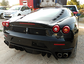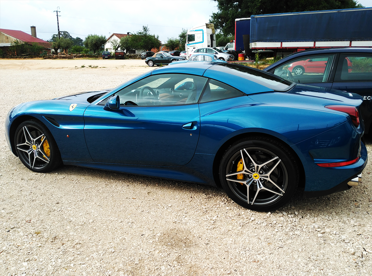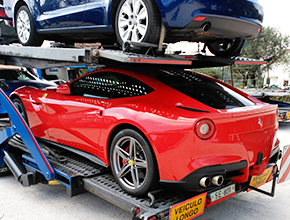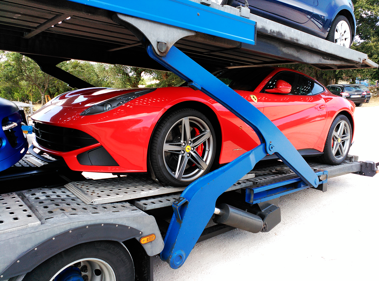 Transporte de Ferrari vermelho metalizado com aileron preto.