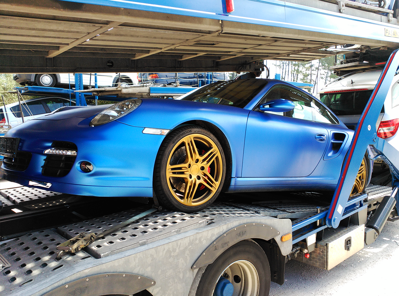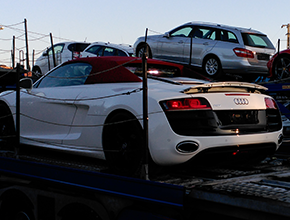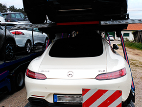 Transporte de vários carros de gama alta, incluindo Mercedes e BMW.
