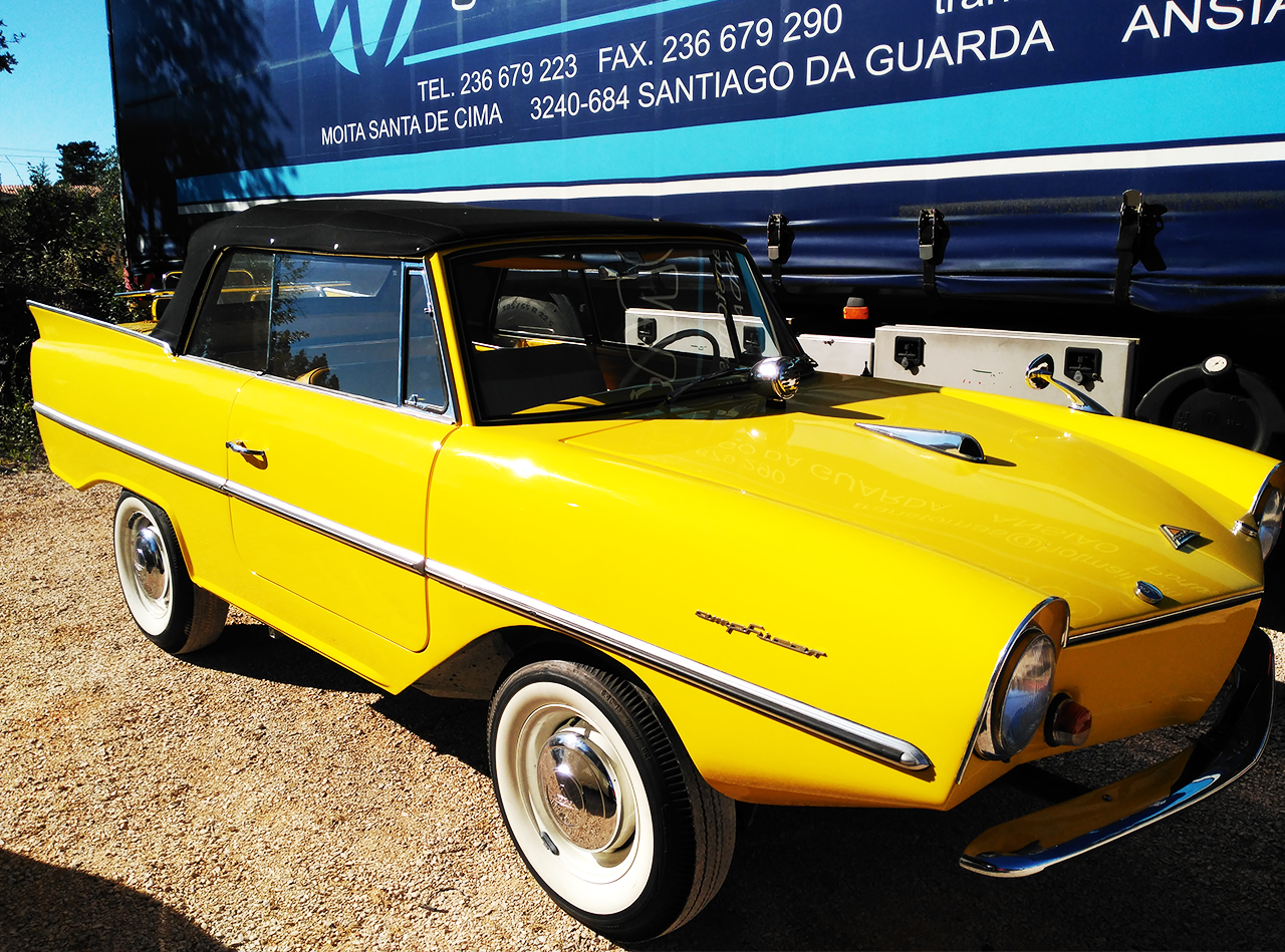 Transporte de Amphicar amarelo (para circulação em estrada e mar)